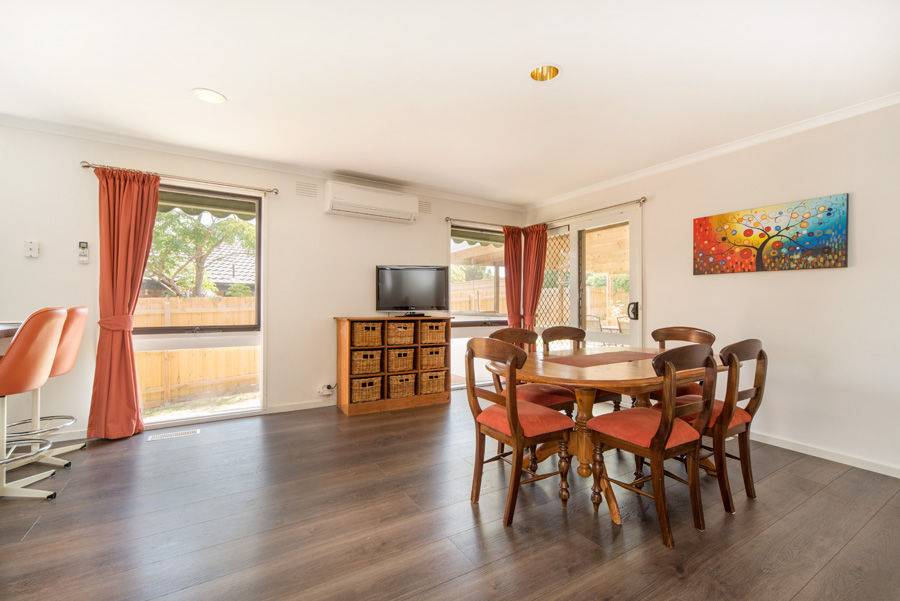 Modernised 3 bedroom family home superbly located in quiet tree lined street in highly sought after Lakewood Estate in Frankston Heights. Offers entrance hall leading to the relaxed lounge and dining room, bright and light updated kitchen with gas cooking and dishwasher opening to a spacious family room overlooking the extra large decked under cover outdoor entertainment area. All 3 bedrooms feature wardrobes with the master bedroom boasting a walk in robe and semi ensuite to the renovated main bathroom. Other features include generous laundry storage, gas ducted heating, 2 split air conditioners, floating floors boards, new carpet, extra spacious rear yard - yet very low maintenance, large garden shed and double lock up garage. There is loads of off street parking for trailers, boats, vehicles etc. Walk to shops, transport, parks, primary and secondary schools. With easy access to the toll free peninsula link, the sandy beaches and nearby wineries makes this property ideal for first home buyers, couples that are down sizing &/or investors.