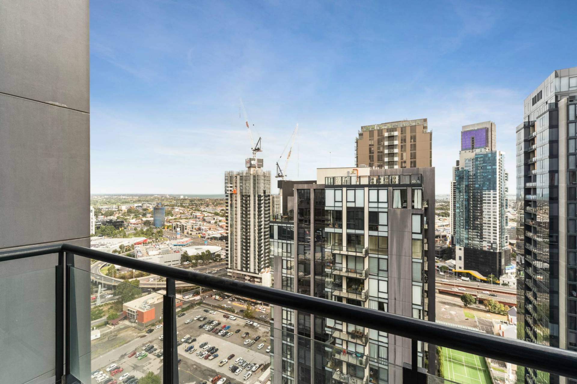 On the 29th floor this bright and modern spacious one bedroom apartment of 50M2 approx offers views of the bay. Secured at the building's entrance by the concierge and pampered with facilities of a communal indoor swimming pool, gym and tennis court on the 4th level this delightful apartment offers open living with spacious lounge/dining adjoining a smart kitchen, modern central bathroom with laundry facilities and a single car space on title. Good size balcony with views to Albert Park Lake & Port Phillip Bay.