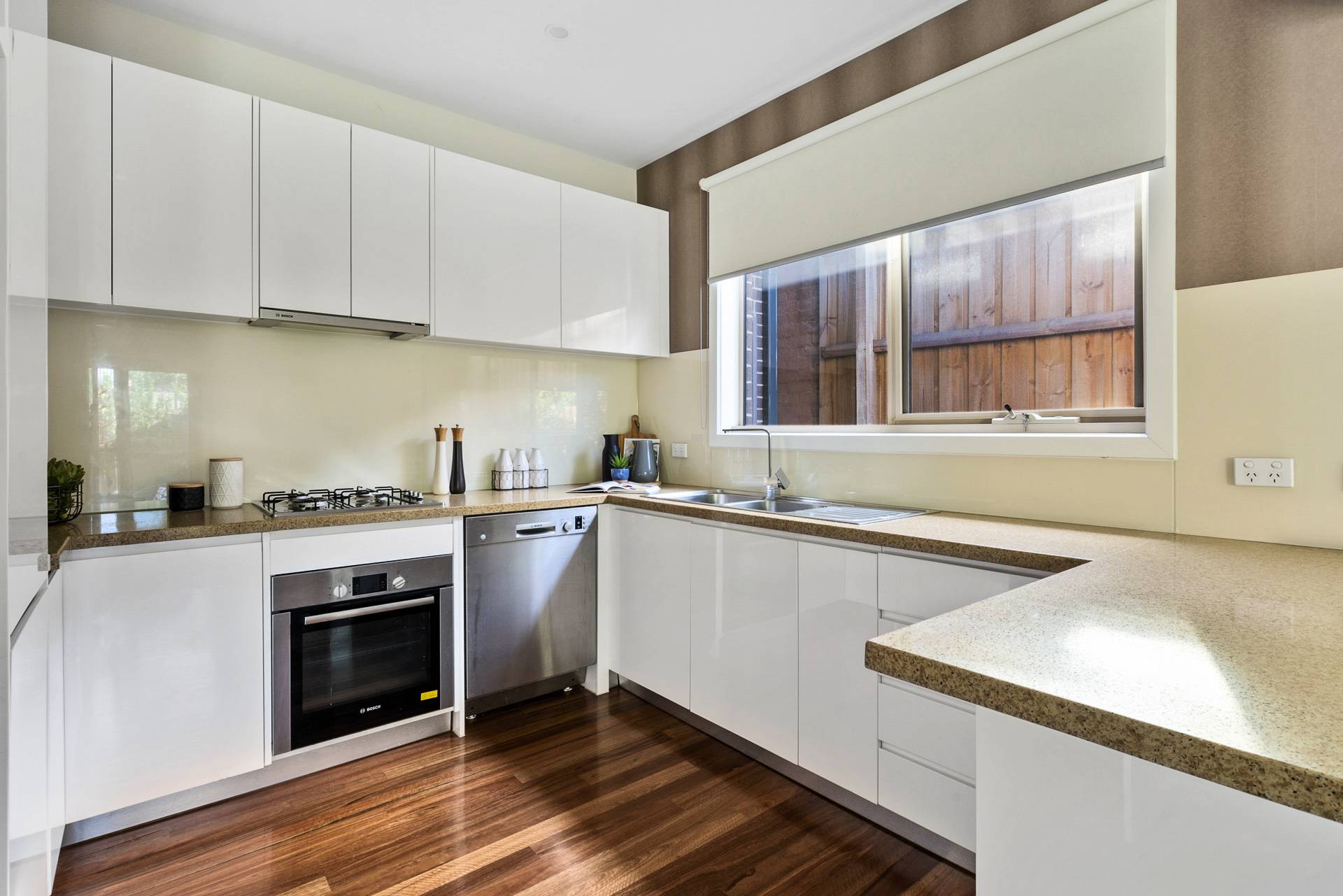 One of three only this stylish 3 Bedroom Townhouse located in this Blue Chip suburb offers total privacy with a well designed floor plan. With it's own street frontage and driveway featuring at ground level a spacious open plan living and dining area with a modern and separate kitchen. Wide sliding glass doors open to the peaceful outdoor private open space where you can relax uninterrupted every day. There is a stainless steel built in barbecue and an entertainers setting. All 3 bedrooms are extra spacious with loads of built - in robes, the main bedroom is on the ground level featuring an ensuite bathroom. Upstairs are the additional bedrooms with a stunning fully tiled bathroom.
