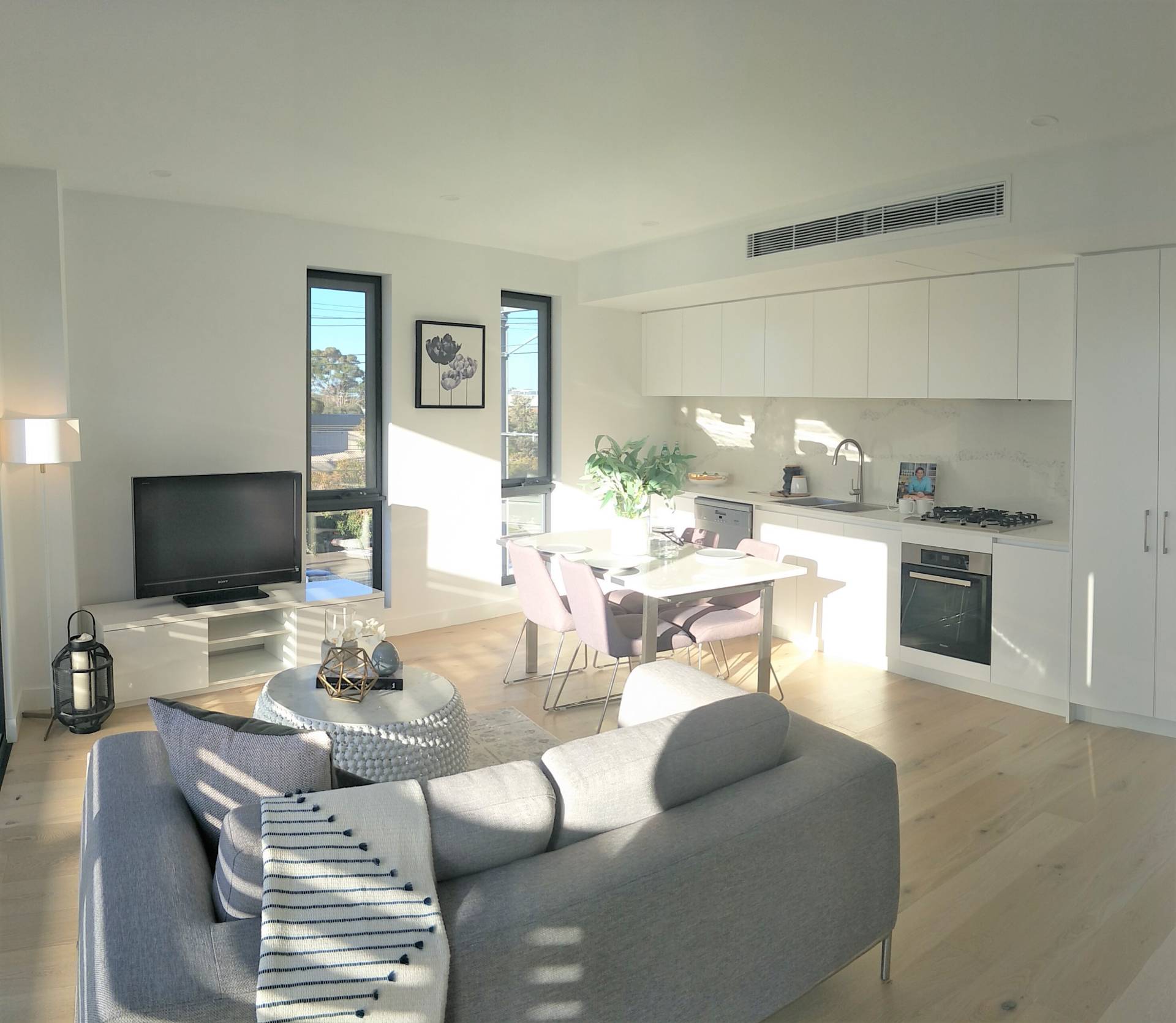 In the heart of Mordialloc one of Melbourne's most highly sought after bayside suburbs this double storey 2 bedroom, 3 bathroom Condo Apartment offers the advantage of 2 zone living with the lounge and dining area on the first floor together with an open plan straight line Miele fitted kitchen and a separate study nook. The double opening sliding doors open out to the extra large north facing balcony with a small court yard below.